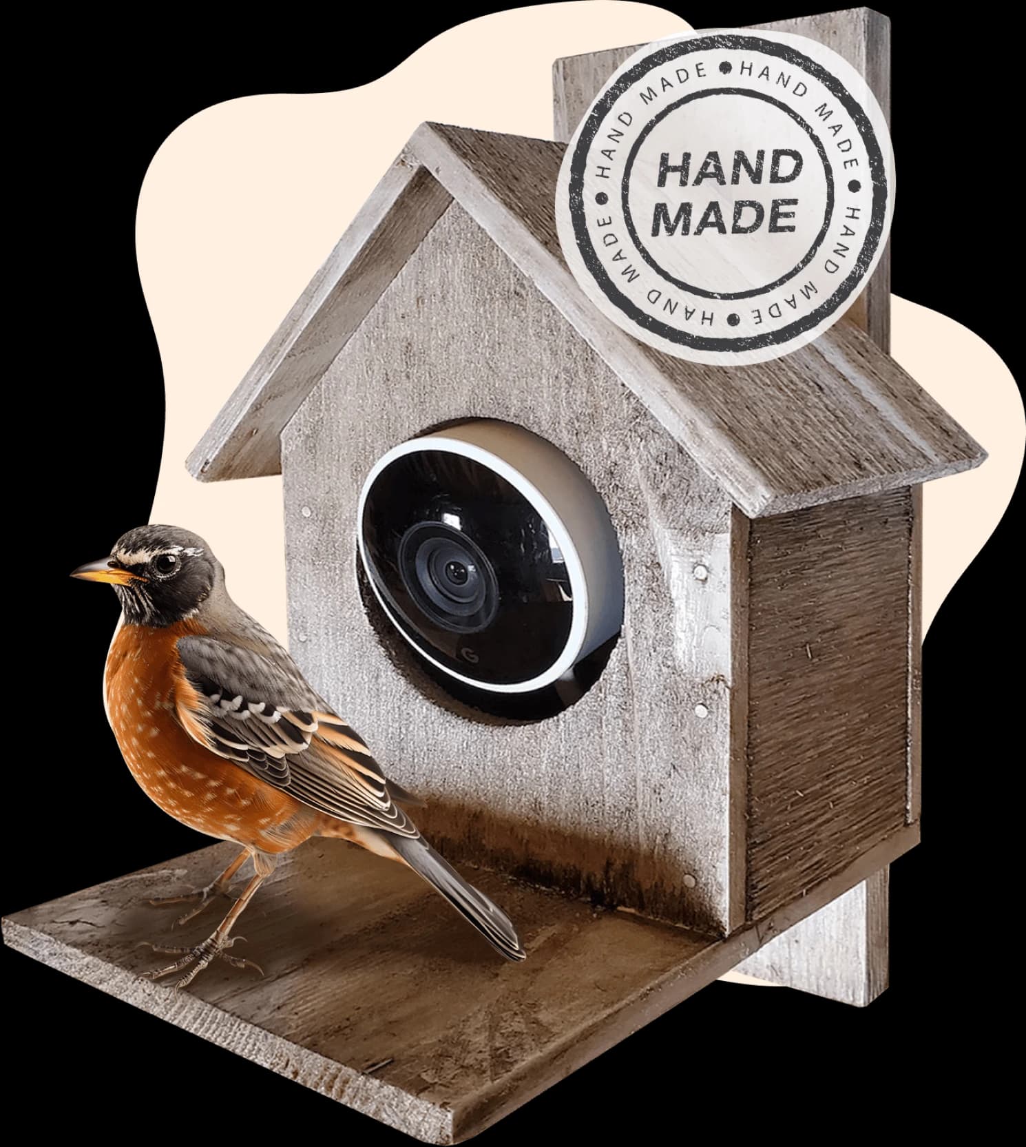 Love these birdhouses, it disguises that I am filming, so the neighbors are less likely to feel awkward about it. I get a lot of snow where I live, so seller helpfully cut off the little porch so I would not get a tiny snowdrift there. Seller was so easy to work with!